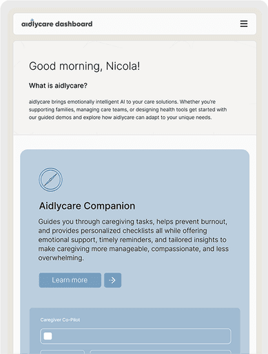 Aidlycare empowers Canadians with emotionally intelligent AI and tailored support that transforms caregiving, health management, and daily wellness, with genuine understanding built in.